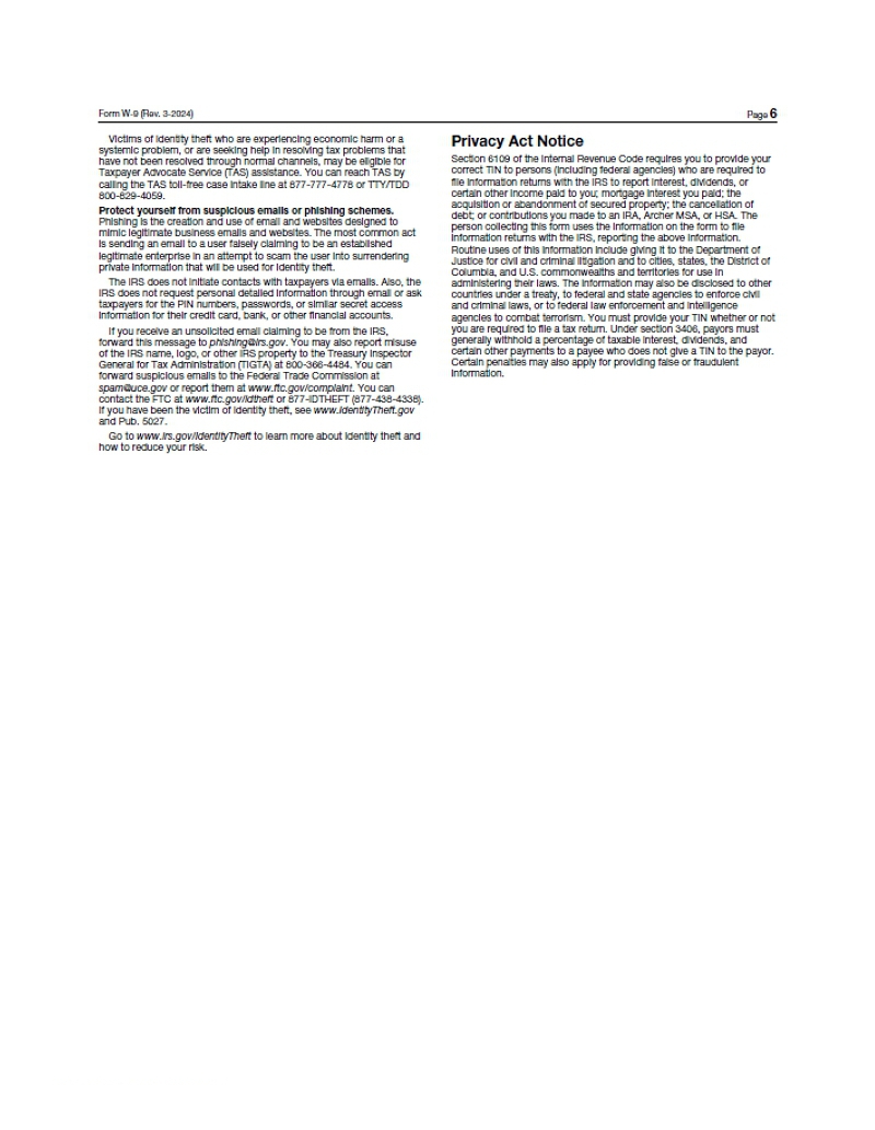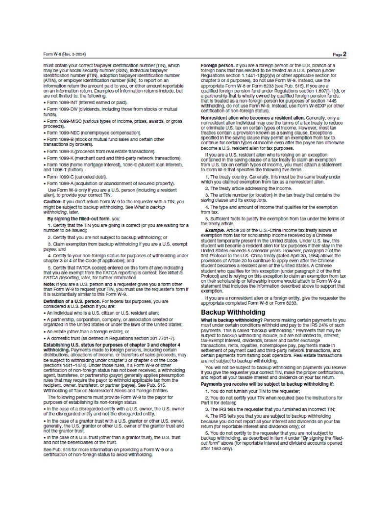 9. Backup Withholding. In order to avoid backup withholding of U.S. federal income tax on payments of cash pursuant to the Offer, a U.S. Holder (as defined below) tendering Shares in the Offer must provide the Depositary or other applicable withholding agent with such U.S. Holder’s correct taxpayer identification number (“TIN”) (i.e., social security number or employer identification number) on a duly completed and properly executed IRS Form W-9, a copy of which is included with this Letter of Transmittal, and certify under penalties of perjury that (i) the TIN provided is correct, (ii) (a) the U.S. Holder is exempt from backup withholding, (b) the U.S. Holder has not been notified by the Internal Revenue Service (the “IRS”) that such U.S. Holder is subject to backup withholding as a result of a failure to report all interest or dividends, or (c) the IRS has notified the U.S. Holder that such U.S. Holder is no longer subject to backup withholding, and (iii) the U.S. Holder is a U.S. citizen or other U.S. person (as defined in the instructions to IRS Form W-9). If a U.S. Holder does not provide a correct TIN or fails to provide the certifications described above, the payment of cash to such U.S. Holder pursuant to the Offer would be subject to backup withholding at the applicable statutory rate (currently 24%). A “U.S. Holder” is any stockholder that for U.S. federal income tax purposes is (i) an individual that is a U.S. citizen or U.S. resident alien, (ii) a corporation created or organized in the United States, any state thereof, or the District of Columbia, (iii) an estate, the income of which is subject to U.S. federal income tax regardless of its source, or (iv) a trust that (a) is subject to the primary supervision of a U.S. court and all substantial decisions of which are subject to the control of one or more “United States persons” (within the meaning of Section 7701(a)(30) of the Code) or (b) has a valid election in effect to be treated as a domestic trust for U.S. federal income tax purposes. A “Non-U.S. Holder” is a beneficial holder of Shares that is neither a “U.S. Holder” nor an entity treated as a partnership for U.S. federal income tax purposes.
