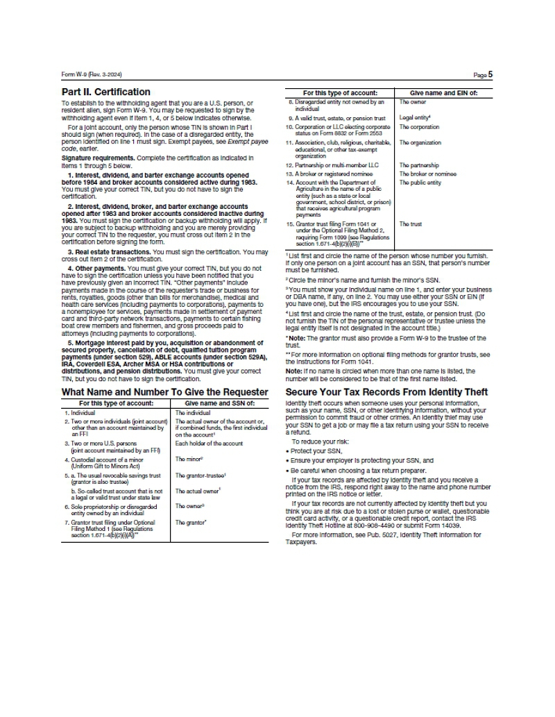 If Shares are held in more than one name or are not in the name of the actual owner, consult the instructions to the enclosed IRS Form W-9 for guidance on which number to report. If a U.S. Holder has not been issued a TIN and has applied for one or intends to apply for one in the near future, such U.S. Holder should consult the instructions to the enclosed IRS Form W-9 for guidance on how to complete IRS Form W-9.
